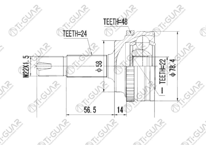 ШРУС наружный /TI-GUAR для Toyota Fun Cargo 1999-2000 NCP20; 22*58*24; TG-9568Z48; (TO-068 TO-E068 TO068A48) 4341052120 NS12052H